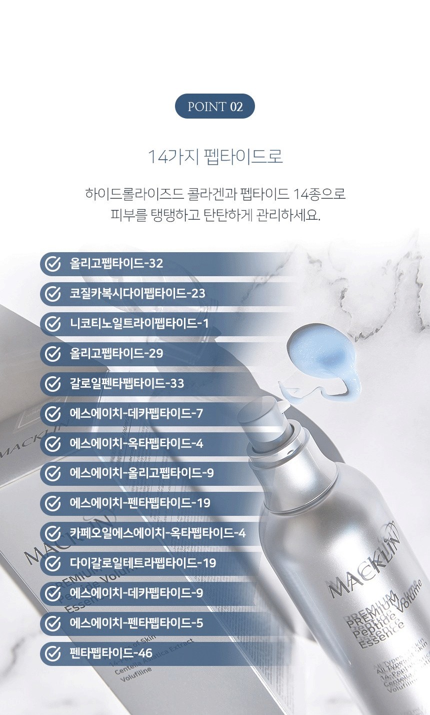 14種胜肽 :保濕、抗衰老、撫平皺紋、緊實輪廓、增加肌膚彈力